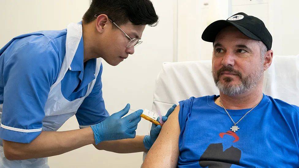 Steve Young在接種mRNA-4157(V940)癌症疫苗。圖源/BBC
