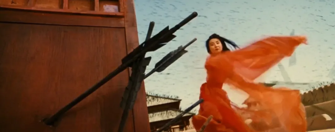 而論起浪漫,早在《英雄》《十面埋伏》《滿城盡帶黃金甲》裏,張藝謀就展現了超越時代的想象,根本不把牛頓和物理放在眼裏。《英雄》裏,張曼玉兩條大紅袖子一揮舞,就把成百上千的箭簇給擋下了。梁朝偉和李連杰在水面旋轉跳躍擊劍,腳脖子都濕不到。《黃金甲》裏,絕壁之間黑衣人彈射幾根觸手就完成飛渡,極限運動愛好者看了都説好。