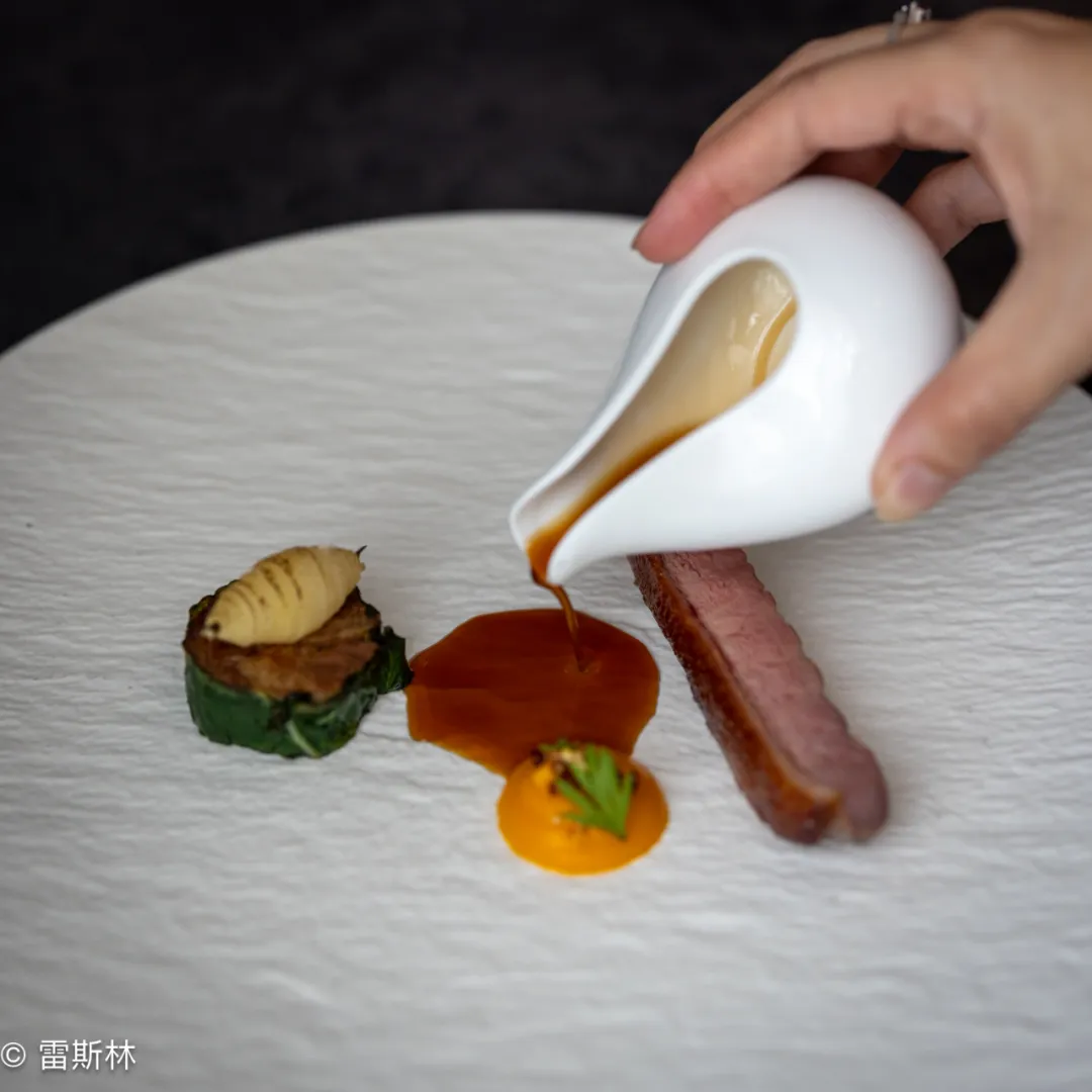 前菜又可愛又好吃,幾個一口小食不但有創意,口感和風味都挺立體有區分度。然後有鴨胸、和牛兩道主菜,加上主食意麪以及後面的甜品,量還是挺紮實的。