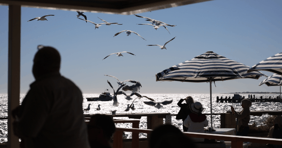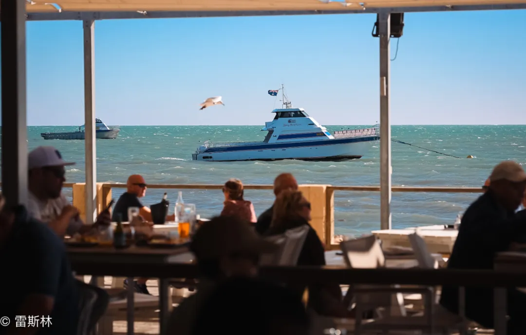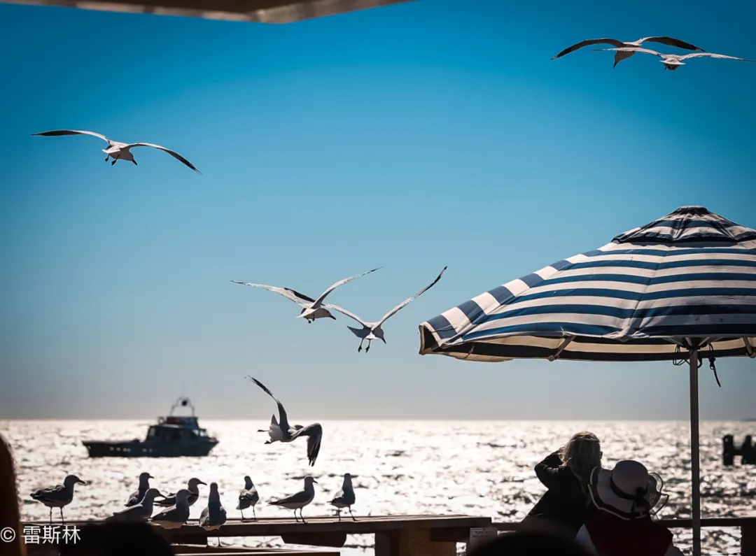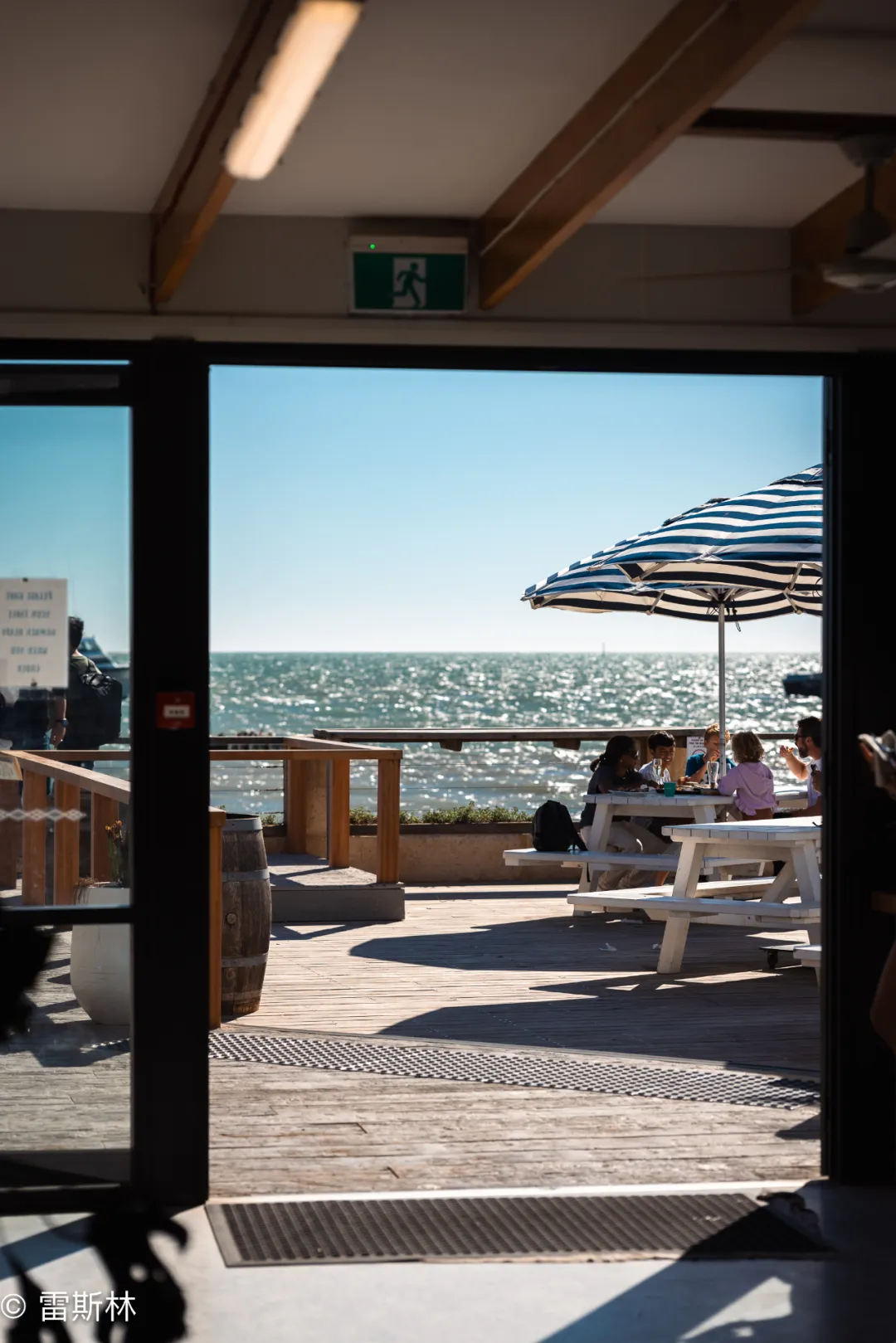 這個餐廳有讓人目眩的海景。陽光、海鷗、遊船、藍到發綠的海面。