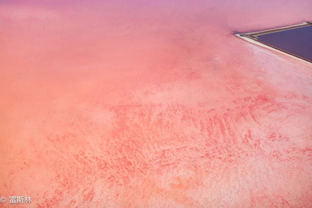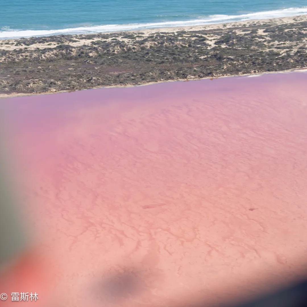 因為湖裏的嗜鹽藻類,在鹽分高的時候會產生紅色β胡蘿蔔素,所以在陽光下就是呈現粉色。而且越是陽光猛烈,它就越粉。