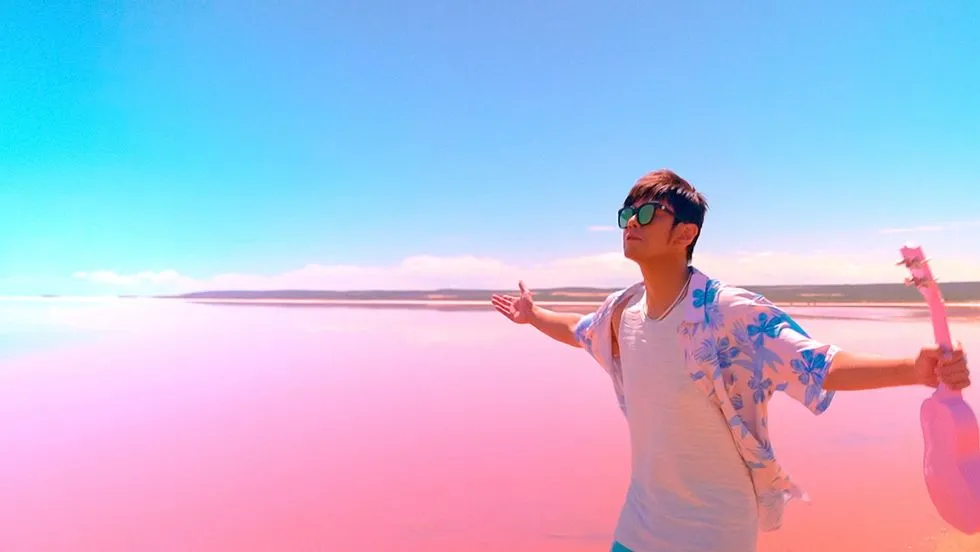 我一開始看這MV,還以為這湖的顏色完全是P出來的,真的去了才發現,還真就是粉色的: