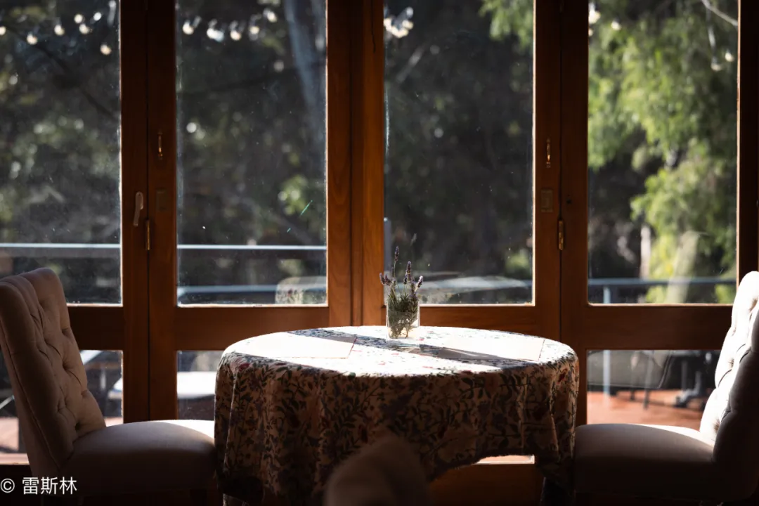 清晨陽光照進來,坐在巨大的中庭用餐,周圍沒有蟲鳴只有鳥叫,滿眼都是綠色,心情一下就明亮起來。