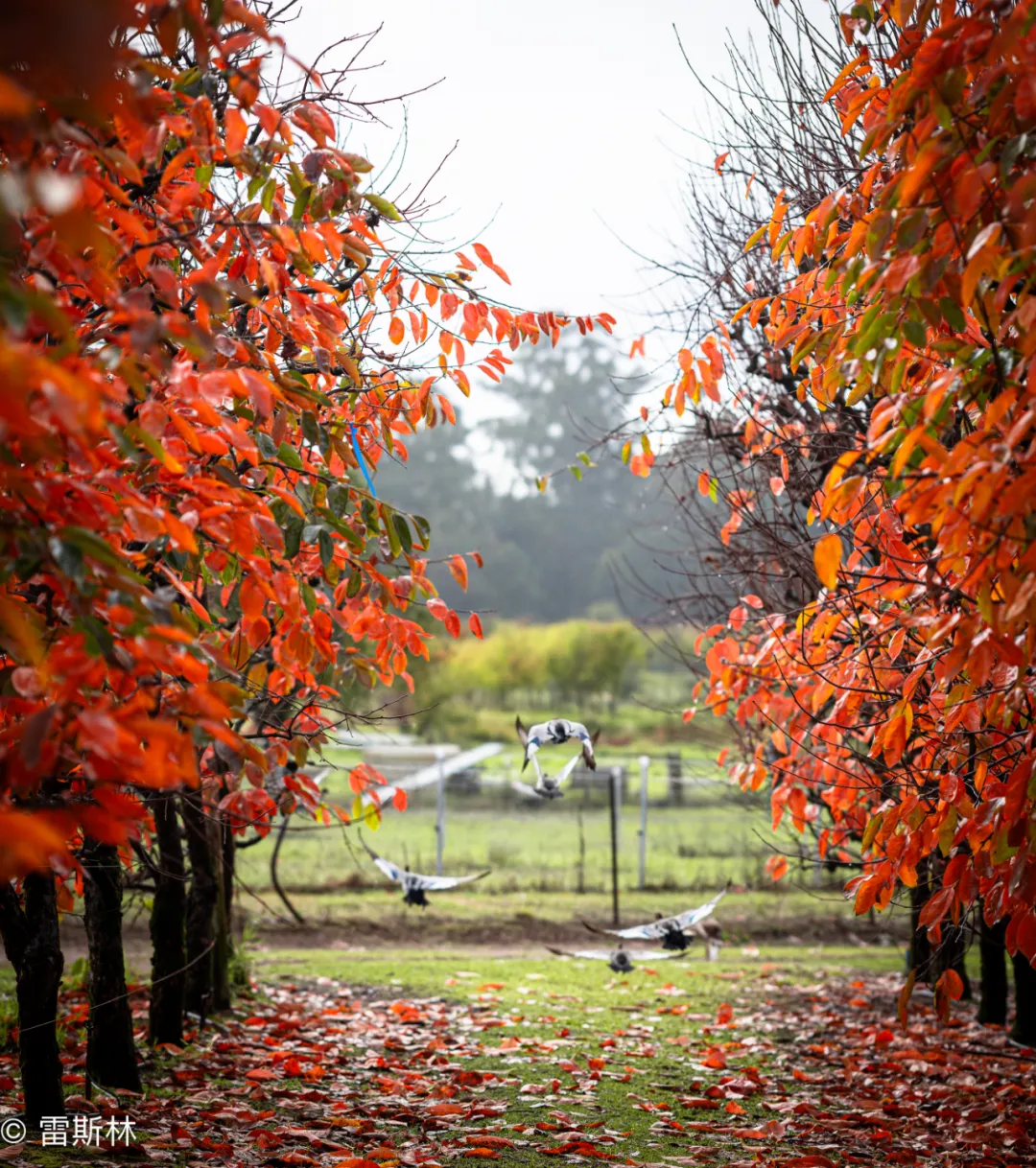 柿子已經收貨完畢,剩下的柿子吸引了不少鸚鵡前來啄食。