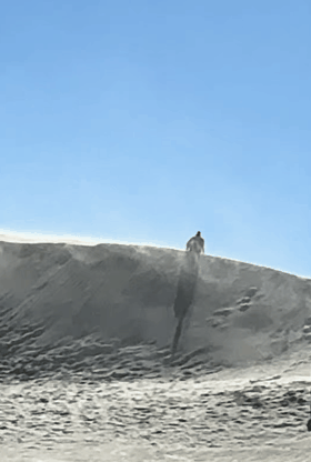 人們會拿上滑雪板,從沙丘的頂部滑下來。