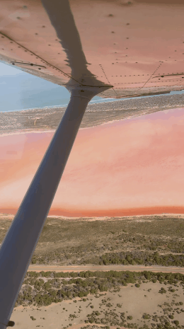 再從Cervantes小鎮往北開2個小時,就能到一座叫傑拉爾頓(Geraldton)的城市,這裏可以坐飛機去看粉紅湖。(PINK LAKE Hutt Lagoon)