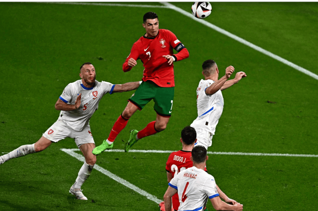 昨天C羅只有一次地面對抗,四次去和捷克後衞爭頂。