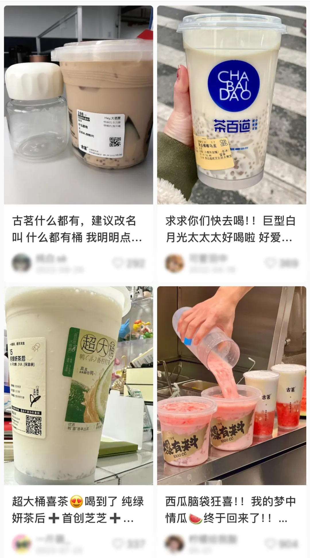 茶百道、CoCo、滬上阿姨、古茗等熱門奶茶品牌也都有自己的超大杯產品。