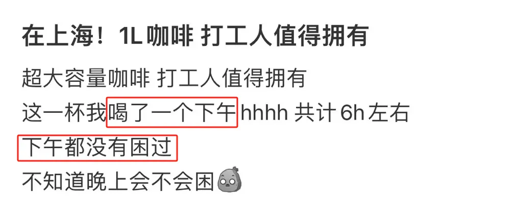 就連打工人自備的咖啡杯都越來越像水桶了,每次接滿一杯美式杵在工位上,都想振聲配一句**“咱打工的人”。**