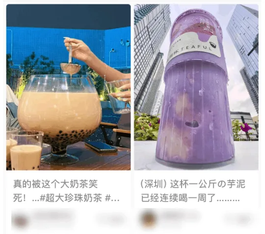 起初的大杯飲品,恰如泡麪加大包,定位是解決茶飲愛好者**“一杯不夠喝,兩杯不好拿”**的痛點。