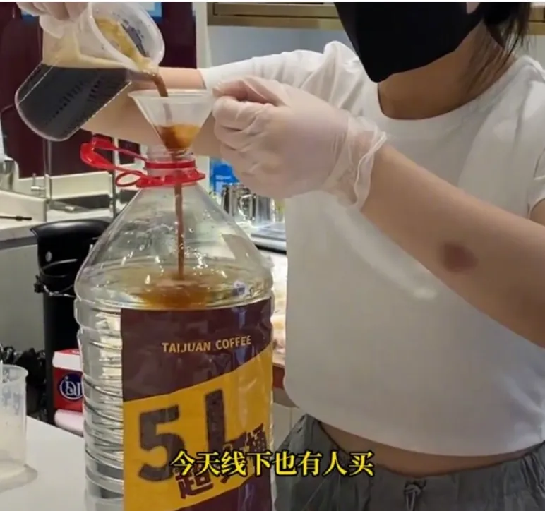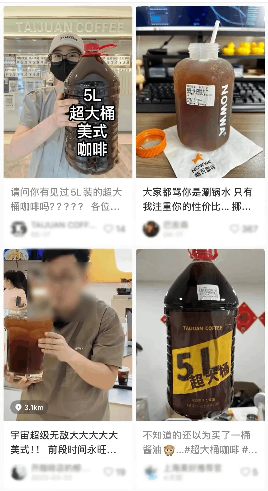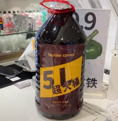 一些咖啡店甚至推出規格5L的超大桶咖啡,沒點健身基礎拎着都費勁。