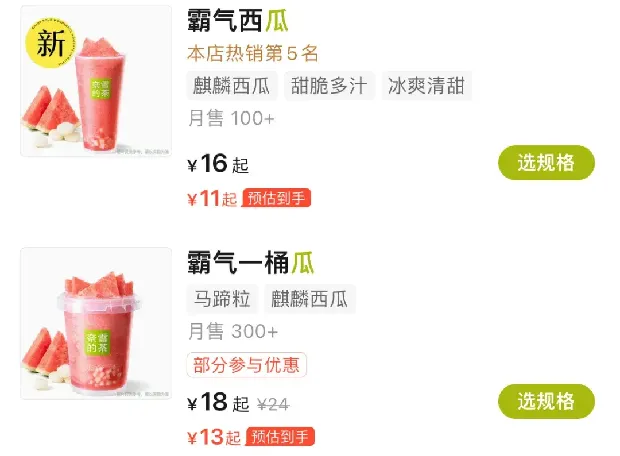 去年夏天奈雪熱銷大桶西瓜飲品,銷量好於同款普杯裝產品
