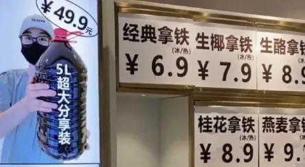 上海某咖啡店推出了一款5升超大分享裝美式,售價49.9元/圖源:微博@021視頻