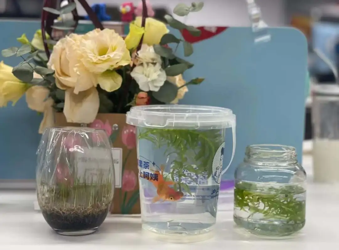 奶茶桶是絕佳的水培和養魚容器,給自己的上班搭子一個家/圖源:小紅書@張好運,已獲授權