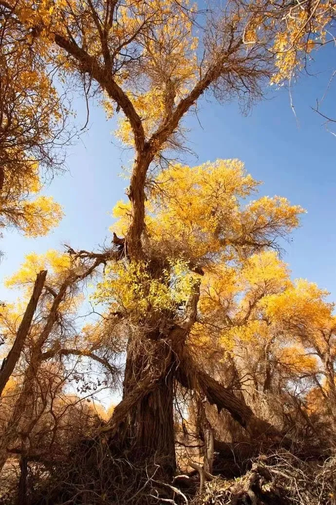 有句話叫:全世界胡楊林看中國,中國胡楊林看新疆,新疆胡楊林看塔里木河。中國的胡楊90%在塔里木河流域,而面積最大的一塊就分佈在巴音郭楞蒙古自治州境內的塔里木河流域。