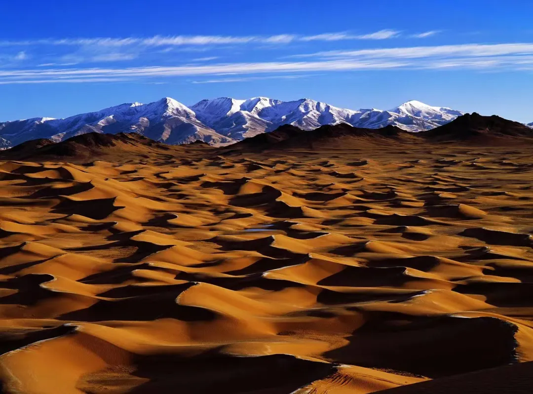 在新疆與青海交界處有一座為塔里木盆地和柴達木盆地的界山——阿爾金山。它好似一位雄偉的戰士與塔克拉瑪干沙漠、庫魯克塔哥山脈一同保衞着羅布泊。