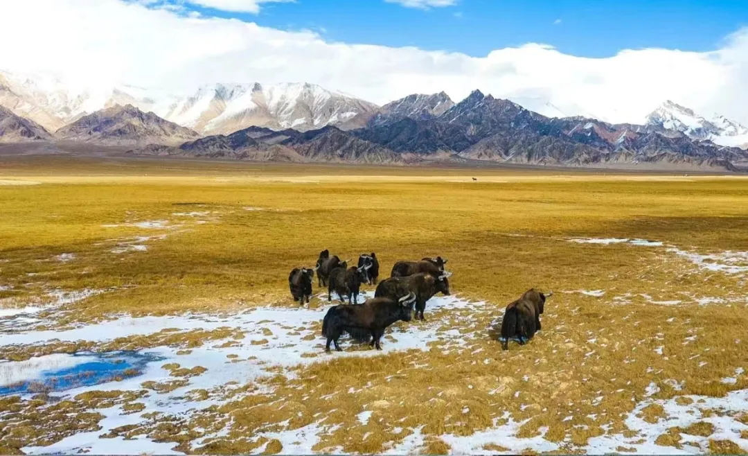 這裏棲息着野駱駝、野驢、野牛、盤羊、藏原羚、藏羚羊、斑頭雁、黑頸鶴、雪豹等珍禽異獸,保留了完好的原始高原生態環境。