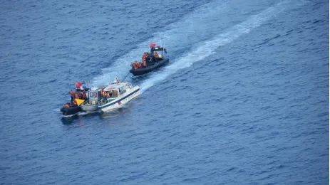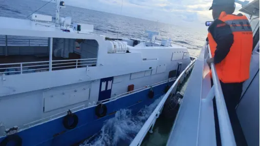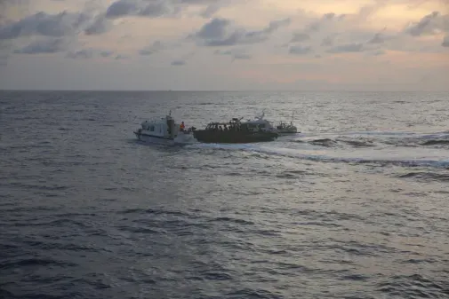 **▲**我海警小艇強制驅離菲運補小船。(圖源:環球時報)
