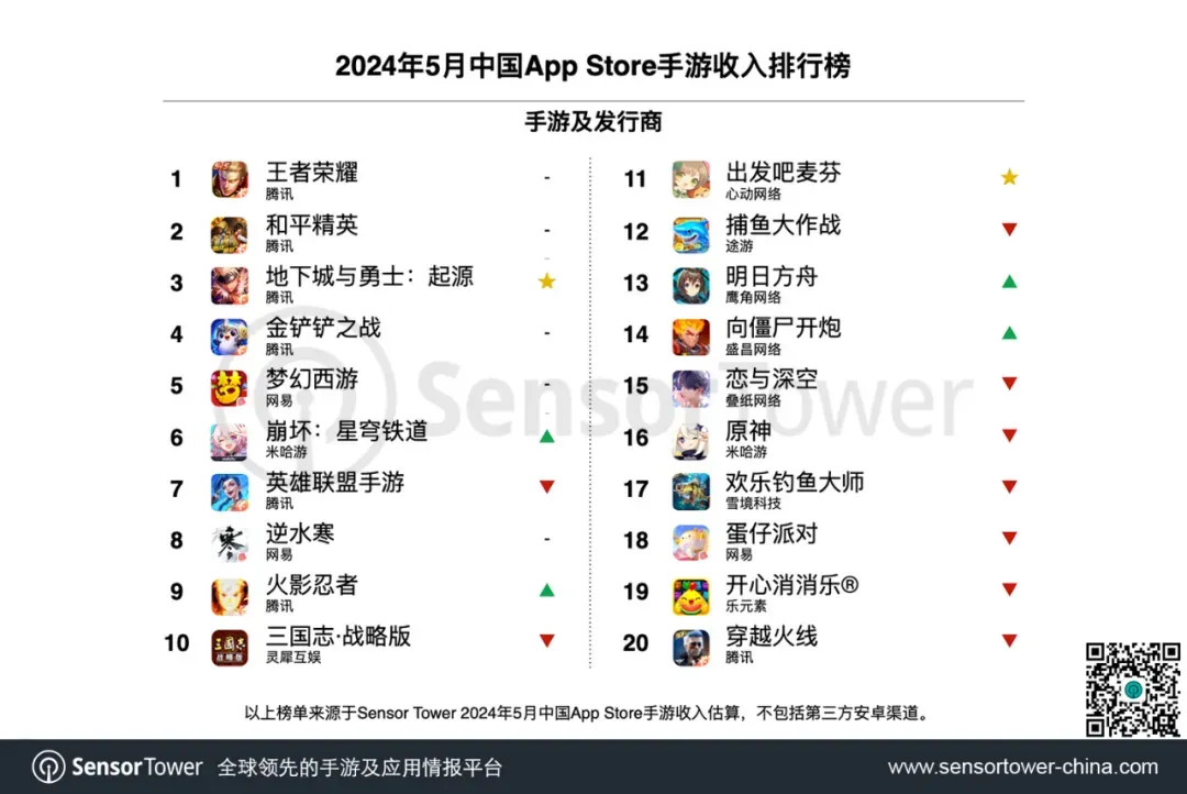 近日,SensorTower發佈了2024年5月中國App Store手遊收入排行榜,其中《地下城與勇士:起源》空降第3,要知道DNF手遊是5月21日才開始正式公測,僅用10天時間就到了第三的位置,可見這款遊戲的戰鬥力有多強,而根據目前iOS暢銷榜的排名來看,這款產品已經連續近一個月穩居國內iOS暢銷總榜榜首,絕對的吸金利器。