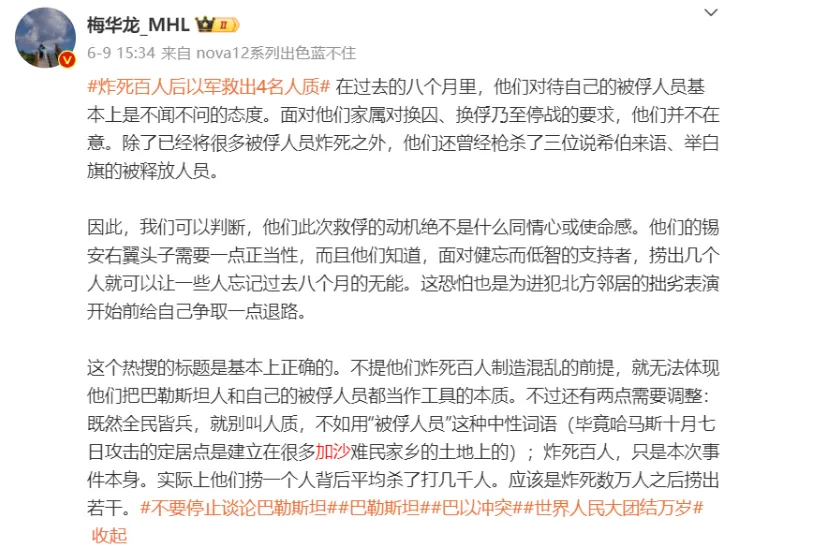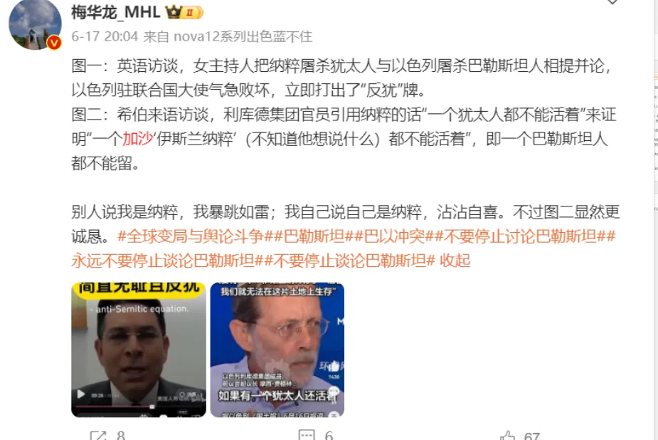 不過我們已經不需要再糾結這些人到底是什麼人了,無論他們是什麼學者高知,精英大V,眼下在加沙發生的事情正在以最清晰明瞭又無比殘酷的方式區分當代世界最基本的文明立場,支持以色列的行為沒有任何藉口可以狡辯。
