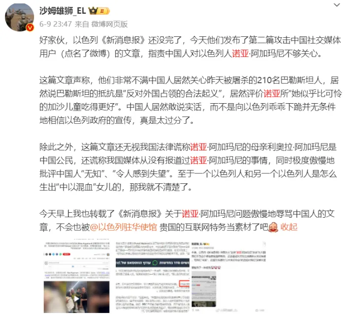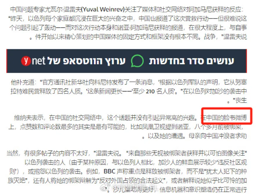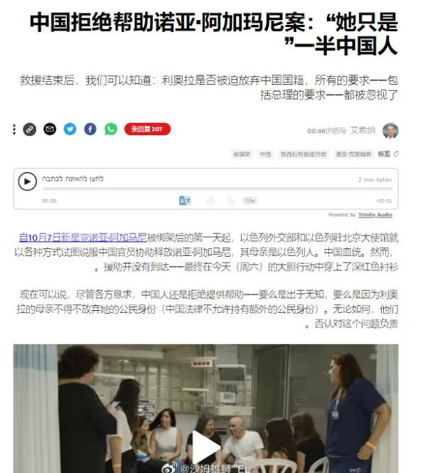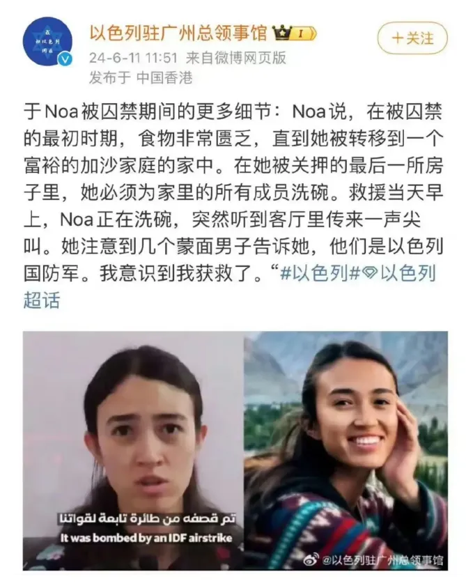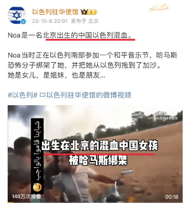 尤其是在某位“潤人”女士和她的女兵女兒的問題上,以色列宣傳的發力突出一個裏外不討好。首先是這位女士的身份,可是當年公費留學的時候跑出去的,**如果嚴格一點來説,可以定性為叛逃,**當然當年這樣的事情不少,也不會一一追究。只是讓這位女士來公開請求中國方面和巴勒斯坦協調,希望中方施壓,幫忙釋放人質,制定這一宣傳策略的人,究竟是怎麼想的?是不是以色列人雙國籍的太多了,以至於覺得這套對中國也管用?