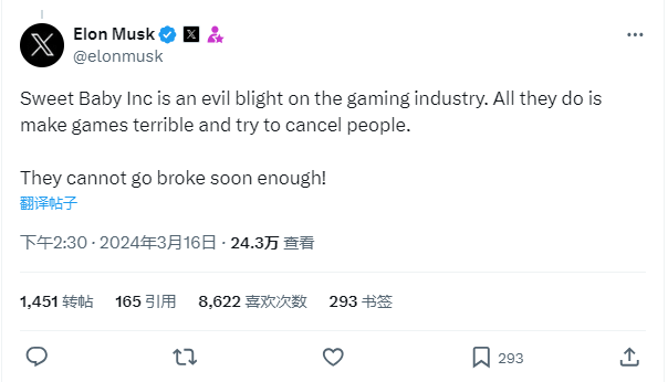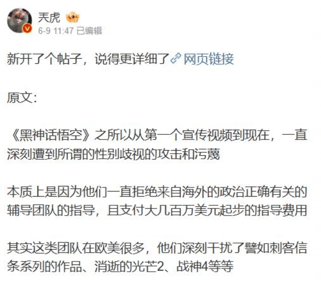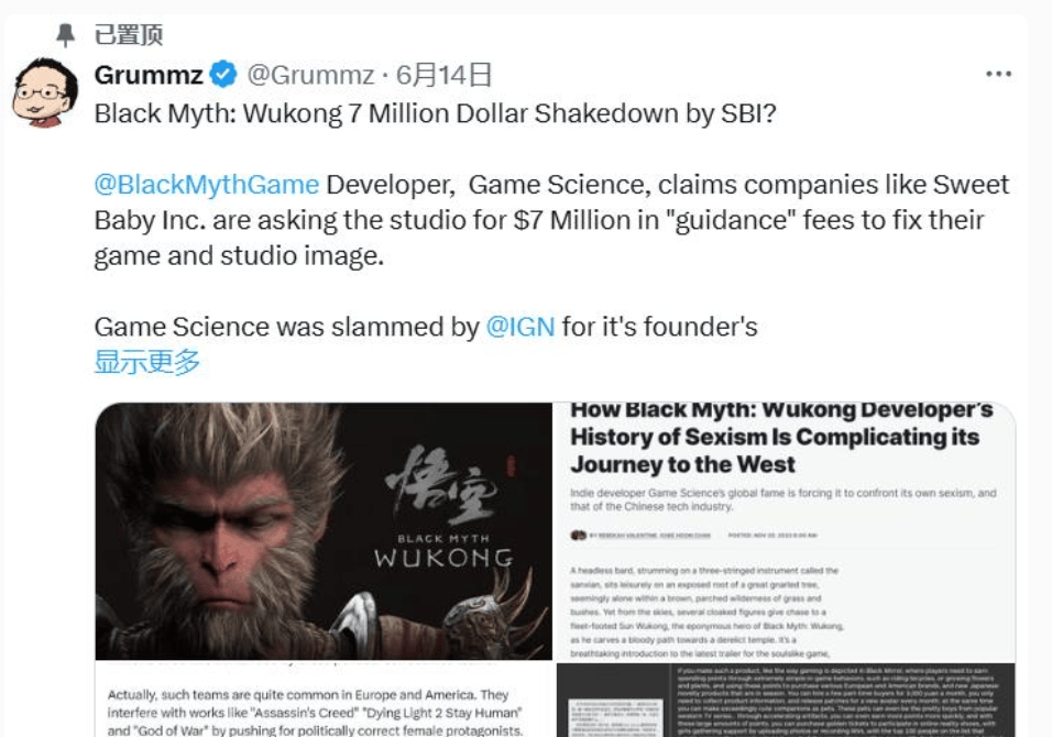 更炸裂的是有博主發帖揭秘,《黑神話》之所以一直被外國媒體攻擊和污衊,主要是因為前幾年拒絕支付政治正確組織Sweet Baby Inc(甜心寶貝公司,以下簡稱SB)700萬美元的“指導費”。