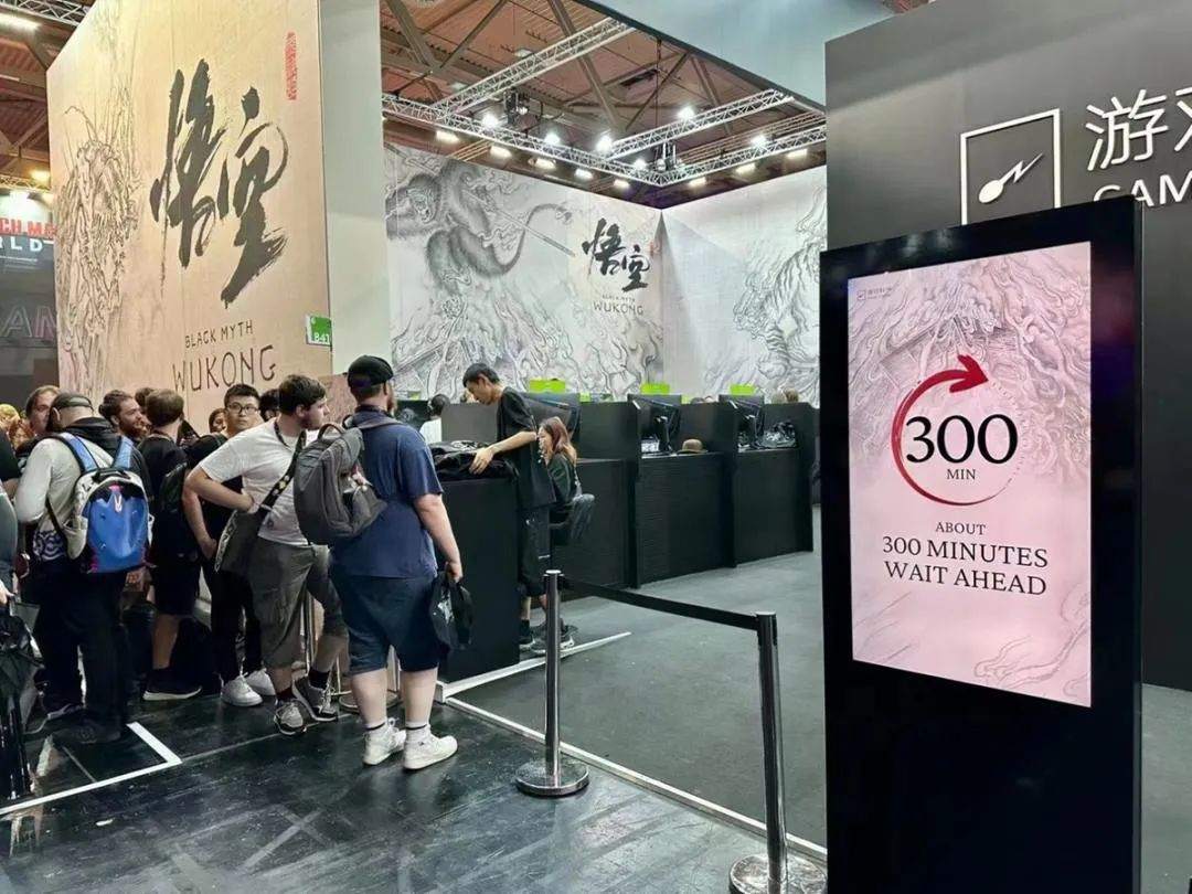 在2023年的德國科隆展上,《黑神話》開放公開試玩,吸引大批玩家排隊,現場的預估時長牌一度顯示為恐怖的300分鐘。