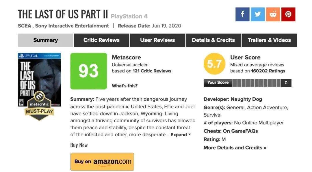 《最後生還者2》的主角被設計為女同,更讓玩家受不了的是解決十分“聖母”,因為主角輕而易舉地原諒了殺害自己父親的仇人。這也導致該遊戲的媒體評分和玩家評分相差巨大。