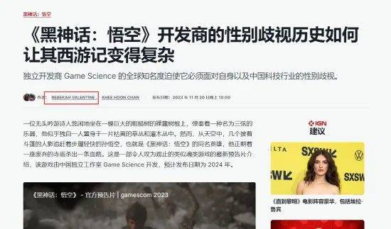 去年11月,IGN髮長文炮轟《黑神話》的某個主創成員曾發表過“性別歧視”的言論。自此以後,每逢《黑神話》有新動態,IGN都會跟進,同時又強調一遍其涉嫌“性別歧視”。