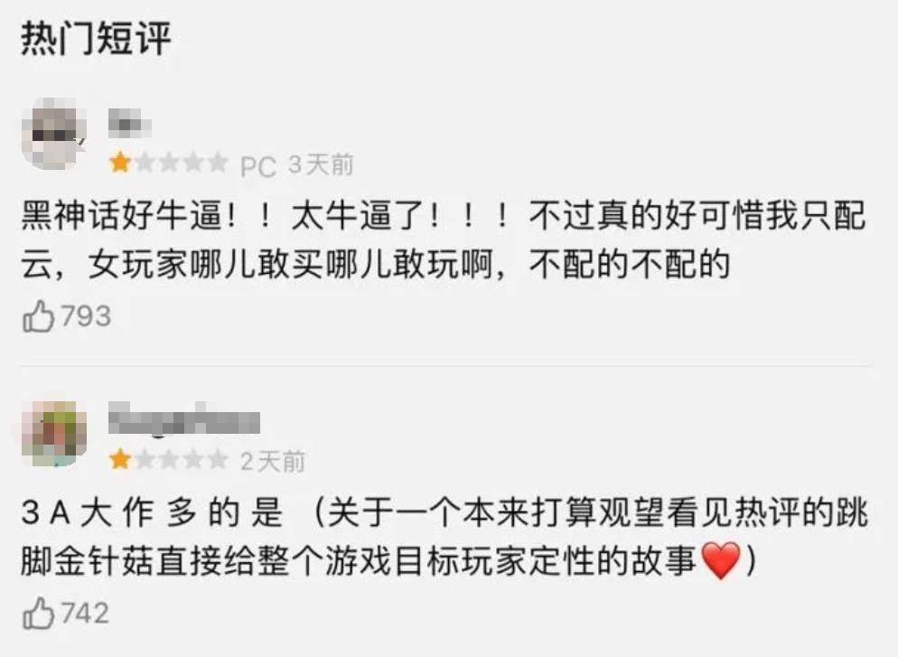 所以近兩年,許多用户給《黑神話》怒打一星,雖然沒人會關心豆瓣上的遊戲評分…