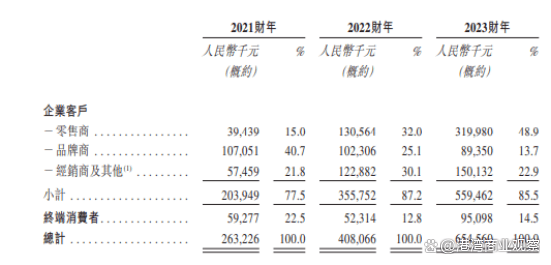 報告期各期,舒寶國際企業客户實現營收分別為2.04億、3.56億、5.59億,營收佔比分別為77.5%、87.2%、85.5%。其中,零售商實現營收為3943.9萬、1.31億、3.20億;品牌商實現營收分別為1.07億、1.02億、8935.0萬;經銷商及其他實現營收分別為5745.9萬、1.23億、1.50億。