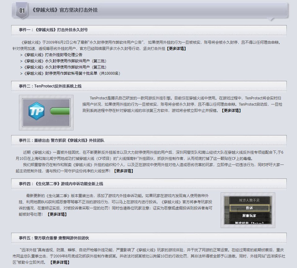 但《穿越火線》國服一直對外掛保持零容忍態度。早在2009年——國服上線的第二年,騰訊已經在重拳出擊的路上,基於對外掛的零容忍態度,開始聯合執法部門抓捕外掛團伙,無意間成了比海外大廠早十幾年的行業先驅之一。