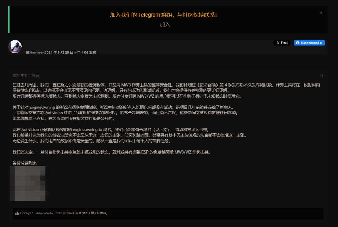 今年5月,另一樁反外掛案件取得勝利,動視起訴外掛平台EngineOwning及其多名運營者,獲得了1446.5萬美元的法定賠償。