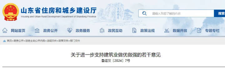此前,6月7日,山東省住房和城鄉建設廳聯合山東多部門發佈《關於進一步支持建築業做優做強的若干意見》,應該就是這個道理。