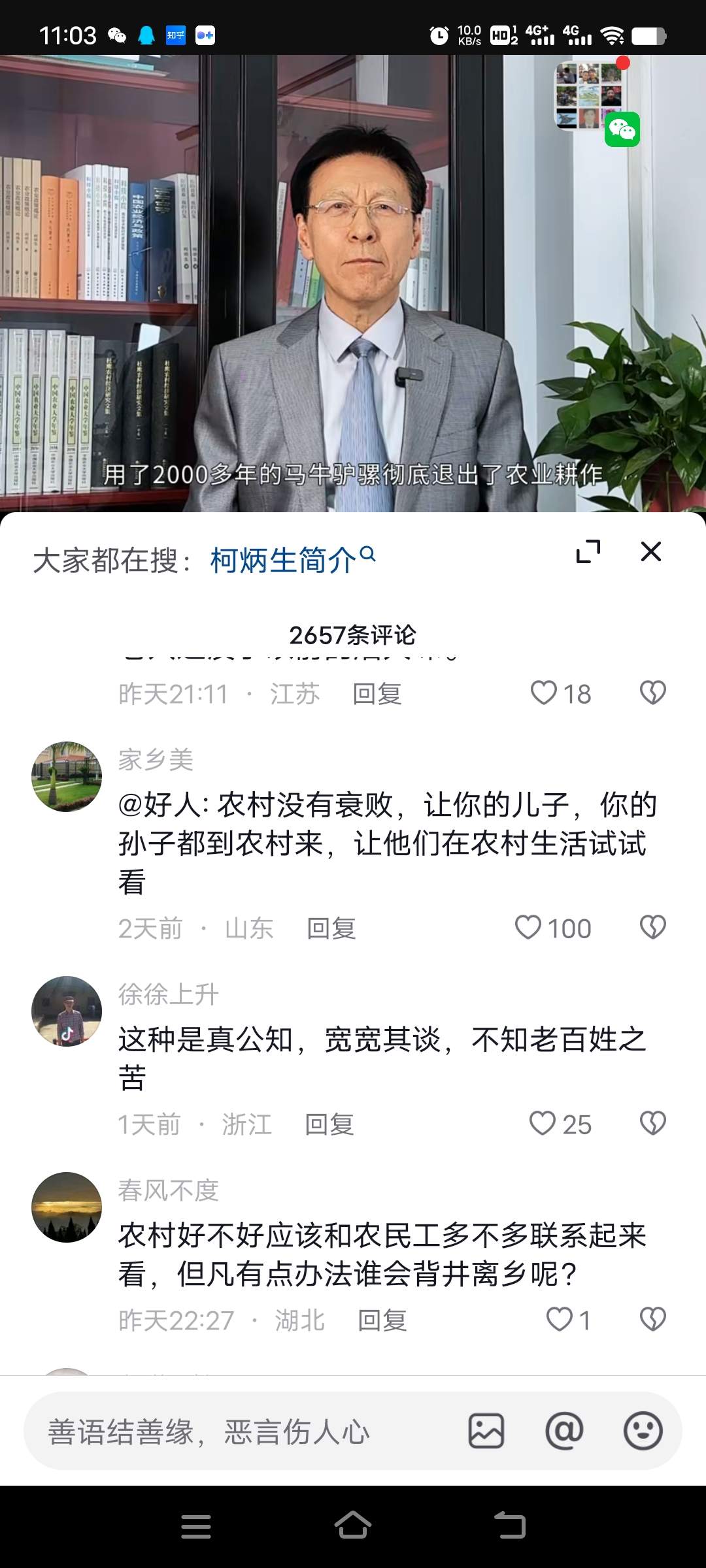 柯老師説的事實與道理,是無可辯駁的存在的。為什麼網友並不認同呢?有高贊評論説:農村沒有衰敗,讓你的兒子、你的孫子都到農村來,讓他們在農村生活試試。