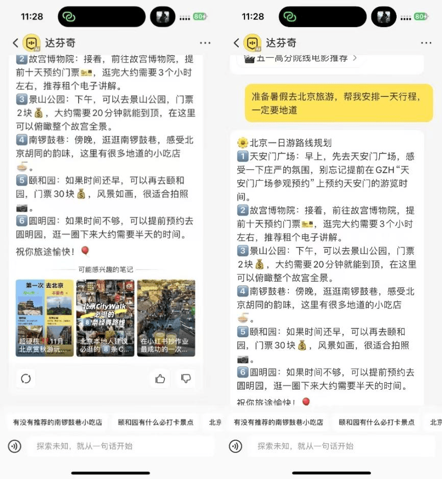 小紅書悄悄上線了名為“達芬奇”的AI聊天機器人,它可以提供智能問答,包括旅遊攻略、美食攻略、地理文化常識、生活技巧等等,有用户在即刻APP上評價“很多細節的反饋,感覺很強”。