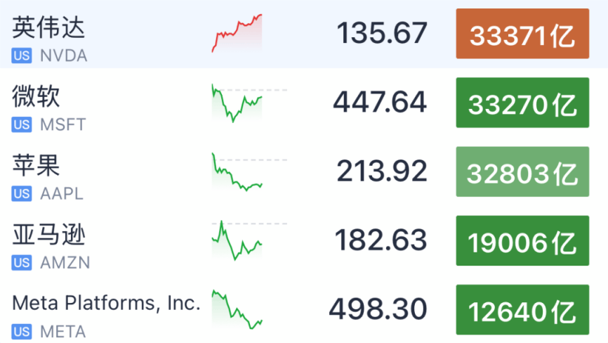 今日凌晨1點多,英偉達股價上漲3.51%,報135.58美元再刷歷史新高,市值達到3.34萬億美元,超越微軟和蘋果,成為全球市值最高的公司。