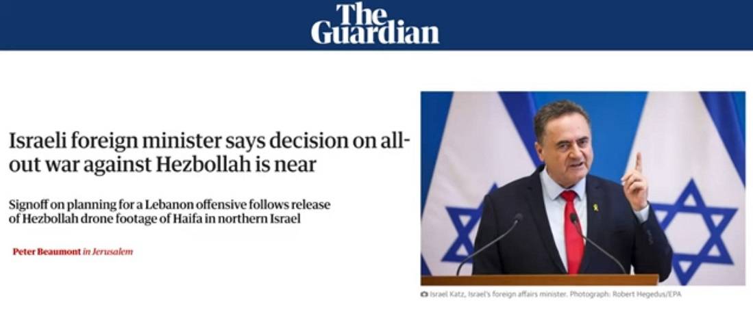 以色列的外交部長稱,全面對抗黎巴嫩真主黨的戰爭已經迫在眉睫了。