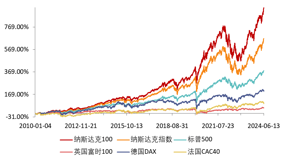 來源:Wind,統計區間2010.1.1-2024.6.14。納斯達克100指數發佈於1985年2月1日,指數過往業績不代表未來表現。