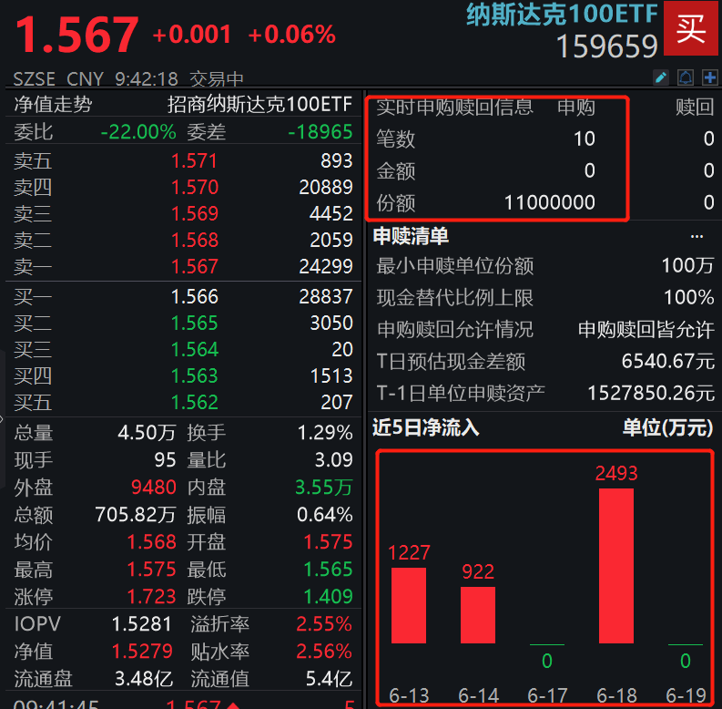 6月20日,納斯達克100ETF(159659)開盤即刷新上市以來高位,此前連續3個交易日收創上市以來新高。