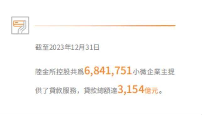 於是,在整個2023年,陸金所控股融資服務共覆蓋全國超 300 個城市,服務延伸至三四線城市及縣城等地區,共為684萬小微企業主提供了借款服務,總額達3154億元。