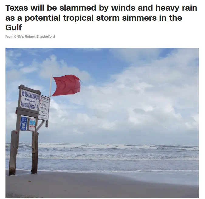 得州迎來颶風季的首場熱帶風暴,面臨嚴重洪水侵襲;而東北部多個地區則仍處於超高温帶來的熱浪天氣中。