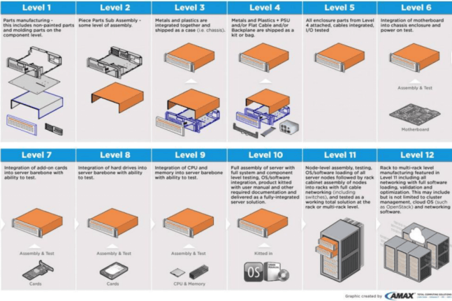服務器這台精密的設備,其製造流程一般分為12個層級(Level1-Level12)。服務器的品牌廠,理論上要完整的做完這12個層級。但是與手機、家電一樣,服務器品牌廠為了提高效率,把Level 1-Level 5外包給了服務器白牌代工企業,由此誕生了白牌這種商業模式。歷史上,白牌企業一直都是吃邊角料的,處在鄙視鏈的最底部。