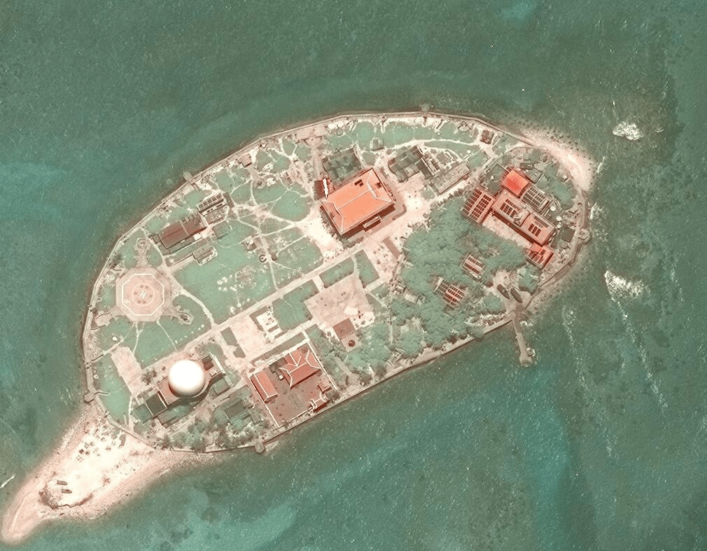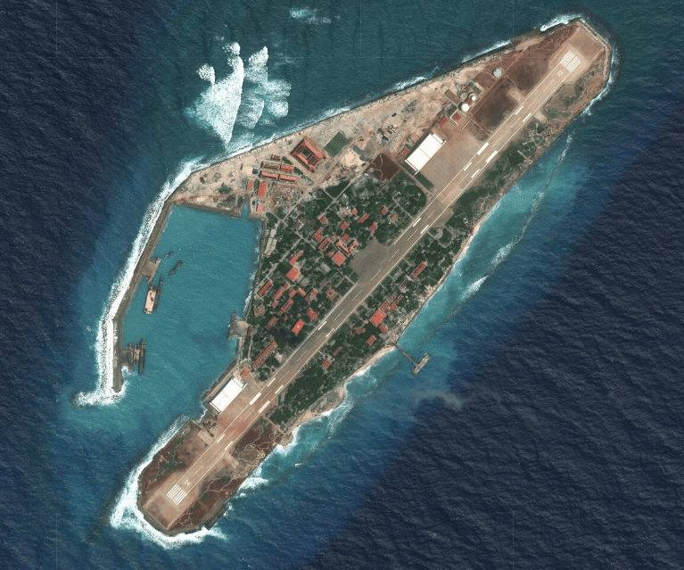 根據歐洲航天局“哨兵”遙感衞星影像顯示,越南在過去的兩年半時間裏在南沙島礁上的擴建工程進展迅猛,已經在鴻庥島、敦謙沙洲、畢生礁、無乜礁、柏礁這5處島礁新增面積近3平方公里。其中柏礁的填海造陸規模空前,已擴建1平方公里,並且有修建島礁機場的跡象。