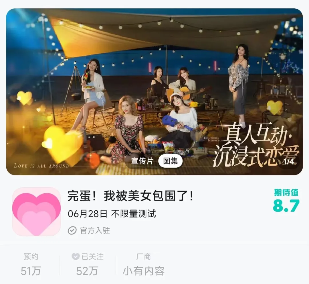一方面是在市場環節,大量在PC端獲得成功的作品開始被移植進移動端。像最初的爆款《完蛋,我被美女包圍了》將於6月28日開啓移動端不限量測試,目前在TapTap端上已有51萬用户預約,互動影遊產品開始有了更多變現想象空間。“PC做口碑,移動端放大銷量”的打法,或將成為固定套路。