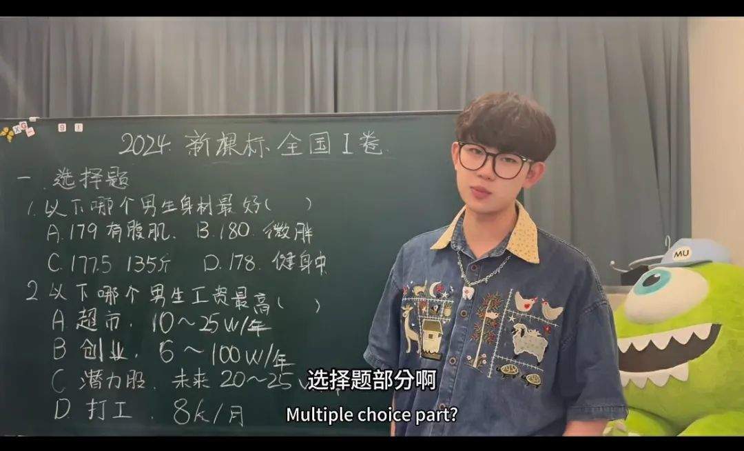 部分博主不僅天天開課教學,眼瞅着到了高考節點,還不忘為賽博學生準備“三年相親,五年模擬”的考題,評論區集體背誦相親界身高定律:過5減4,低5為0,帶小數點的暫時不變。