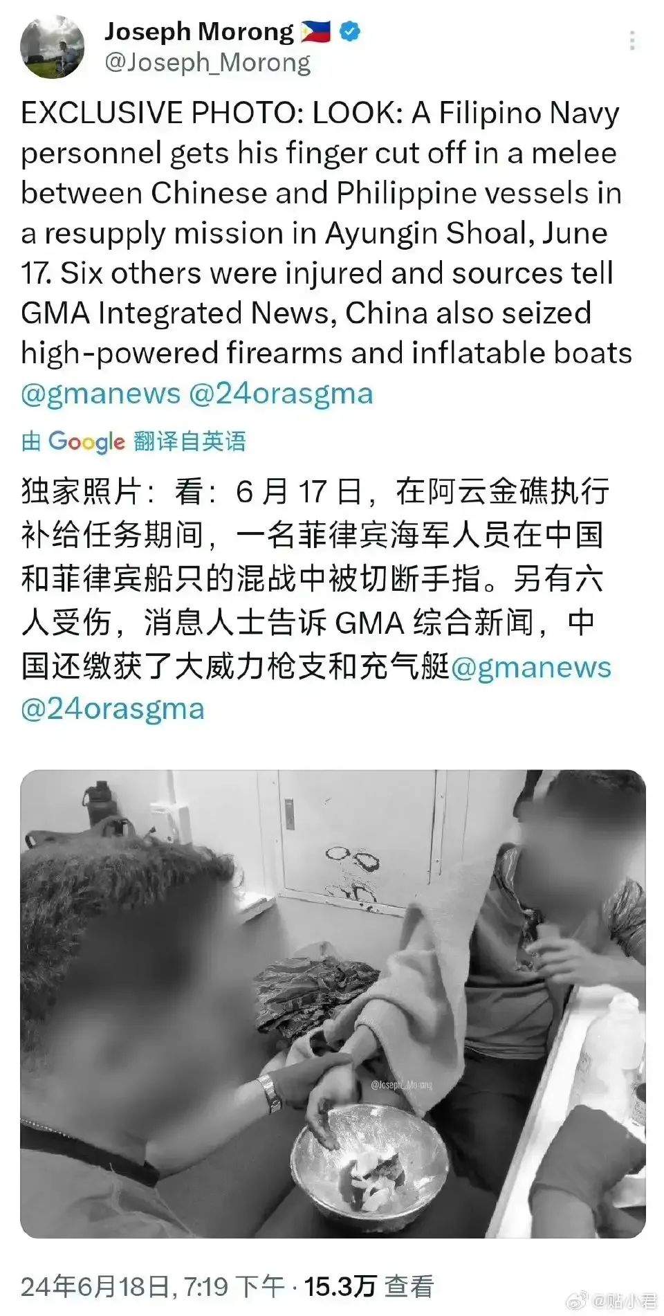 菲律賓的海軍“特戰隊員”手裏拿着槍也不敢開火,眼睜睜被奪槍、繳械,還有一個被夾斷手指……菲律賓官方也不敢大聲説話,都在裝死。