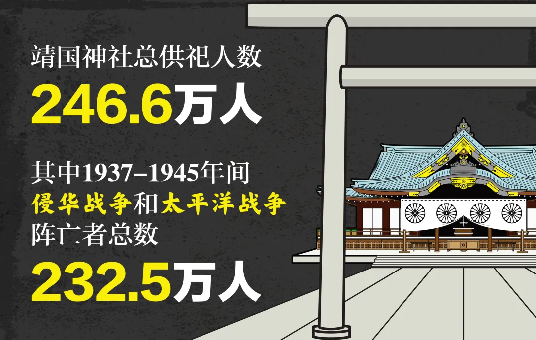 **至於日本一些政客在靖國神社問題上的所作所為,****更是人神共憤。**靖國神社是日本軍國主義發動對外侵略戰爭的精神工具和象徵,裏面供着14名二戰甲級戰犯。日本高官前赴後繼高調“參拜”這種鬼窟,不僅是對歷史正義的一次次褻瀆,也是對受害國人民感情的一次次傷害,更折射出國家主導將侵略戰爭合法化、正當化甚至榮耀化的政治意圖。