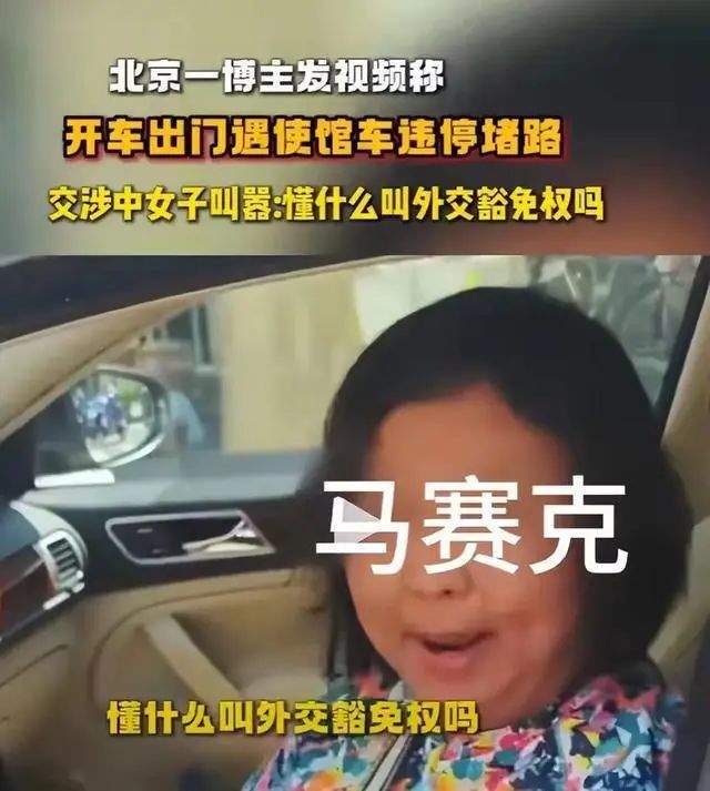 視頻顯示,她駕駛的(323007使)黑色黑色轎車無故停在單行路上,導致其他車輛無法前行,大家因其懸掛使館車牌,紛紛掉頭離去,有一位男子善意的提醒其不要擋路,卻遭遇到了餘女士囂張跋扈的咆哮:
