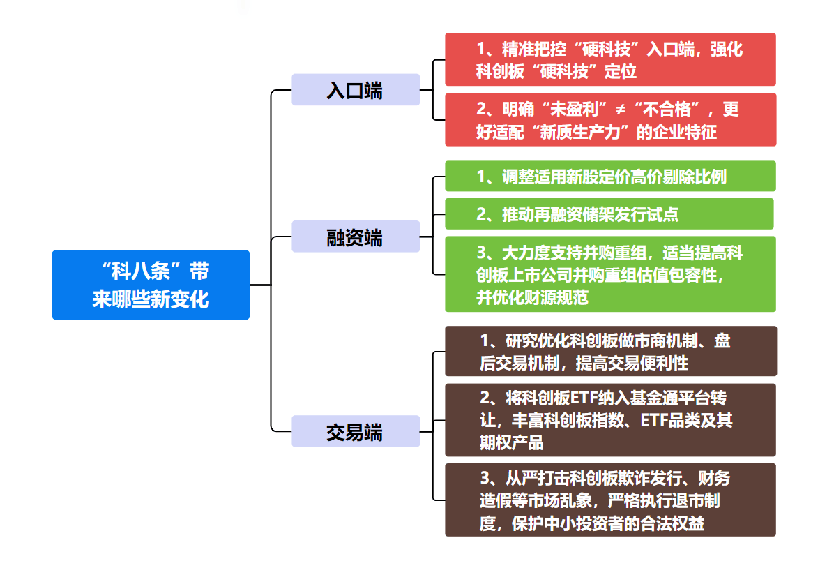 6月19日,在備受矚目的陸家嘴論壇上,證監會官宣將發佈《關於深化科創板改革、服務科技創新和新質生產力發展的八條措施》,簡稱“科八條”。五年來,科創板歷經風風雨雨逐步向縱深推進,“科八條”的發佈也是拉開了新一輪科創板改革的帷幕。那麼“科八條”將給資本市場帶來哪些新變化呢?跟最近刷屏的“科特估”又是如何聯動的呢?